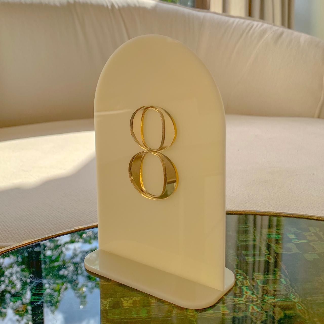 Cut from smooth cream acrylic, each number is beautifully finished with gold mirror acrylic digits, adding a luxurious and eye-catching contrast to your décor.