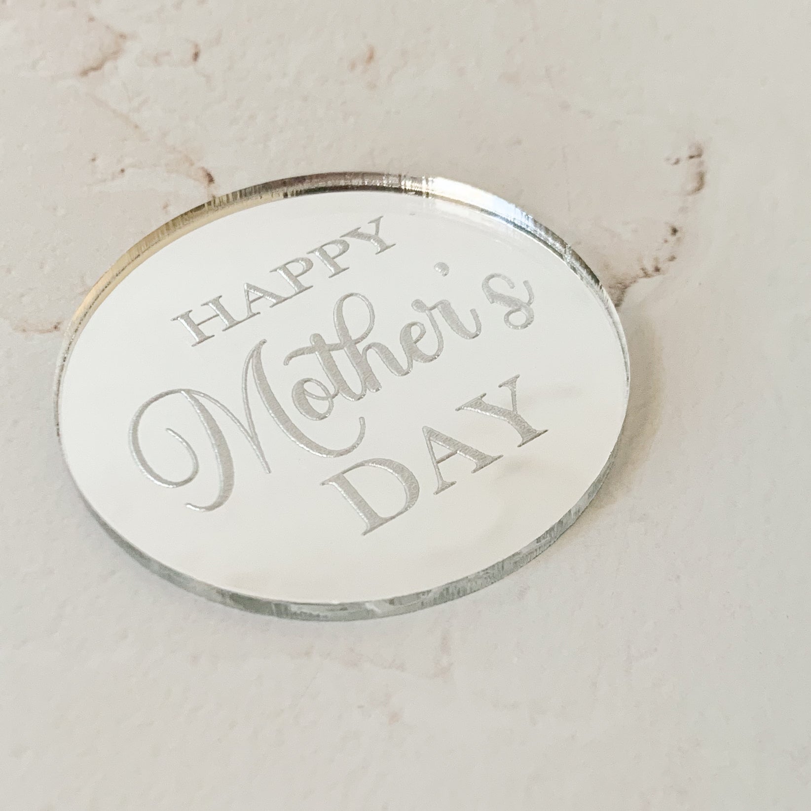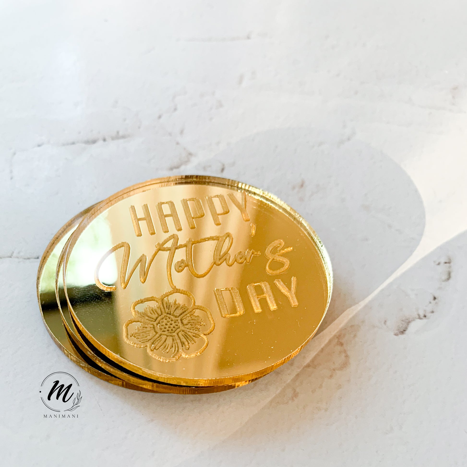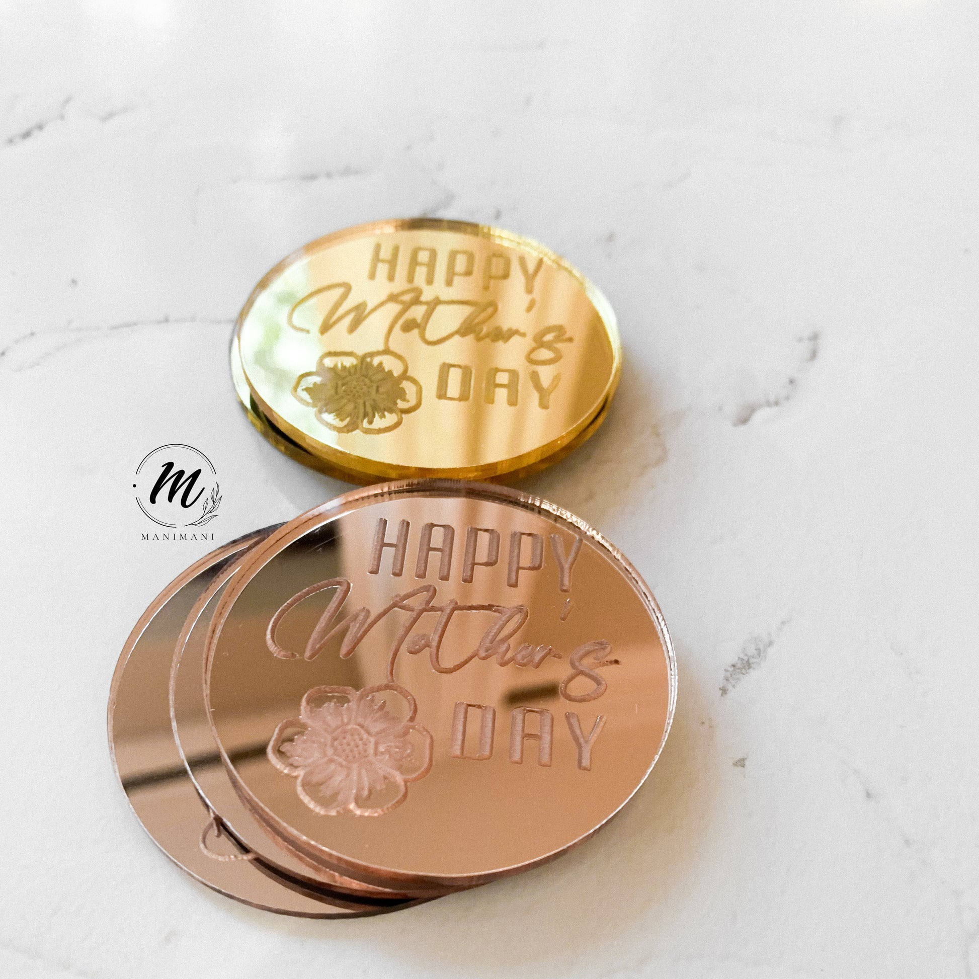 "Upgrade mom's cupcakes with Mother's Day Cupcake Disks! These elegant adornments add a touch of acrylic sparkle to any baked good. Show off your baking skills and give mom the sweet treat she deserves! (Moms love a little extra sparkle, don't they?)"