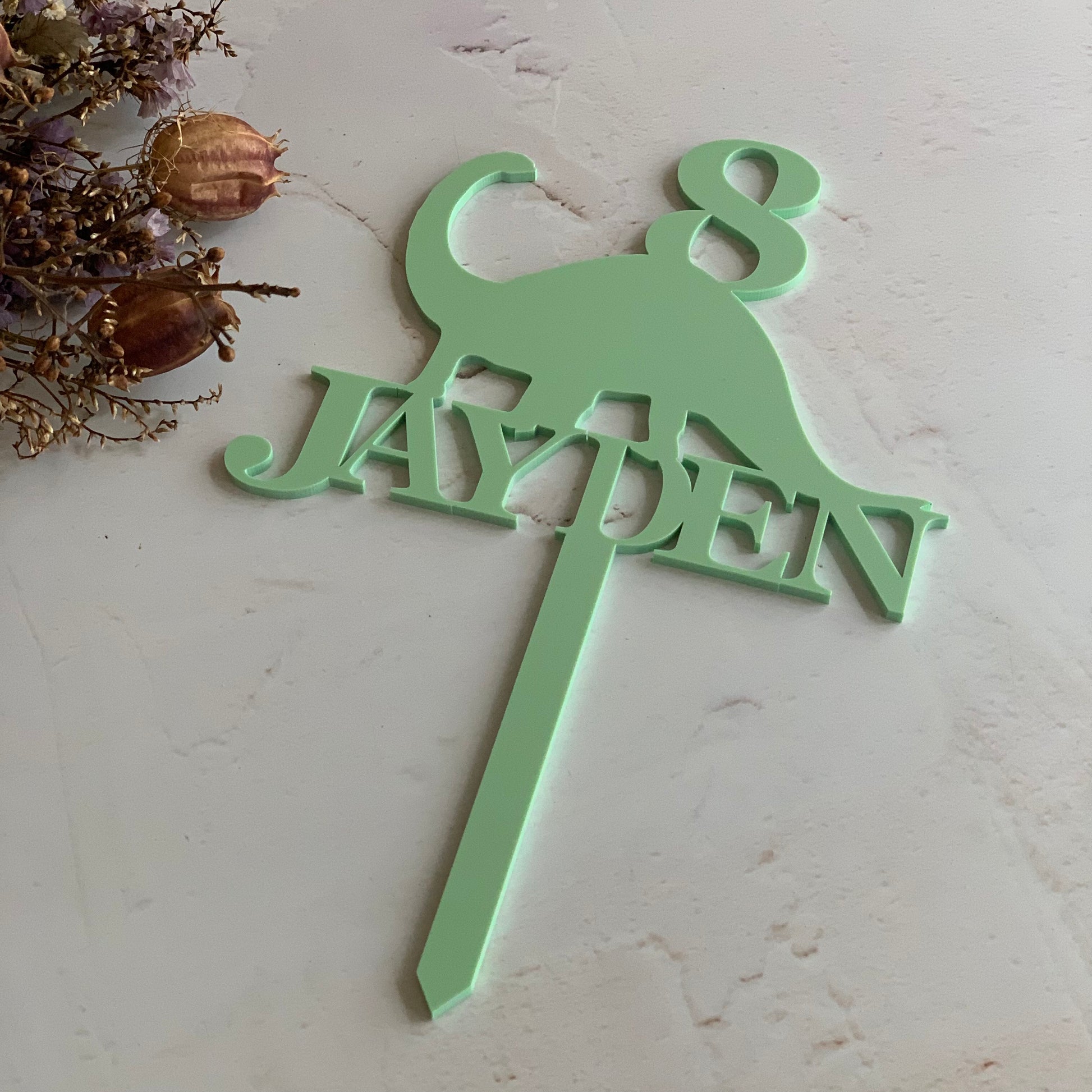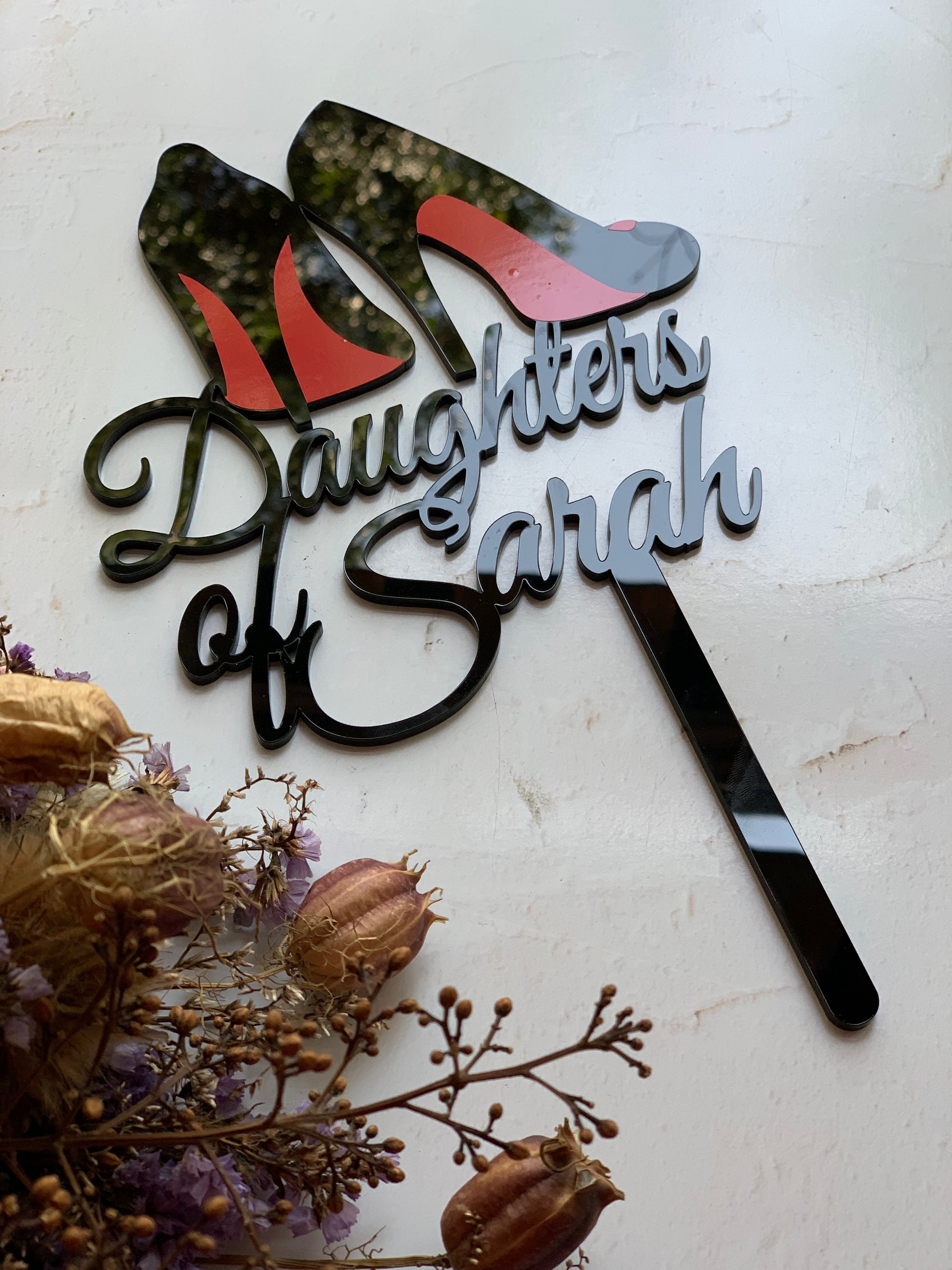The acrylic topper is tailored to your needs, allowing you to tell a unique story and personalise your cake. Make your cake the star of your celebration with this unique topper.
